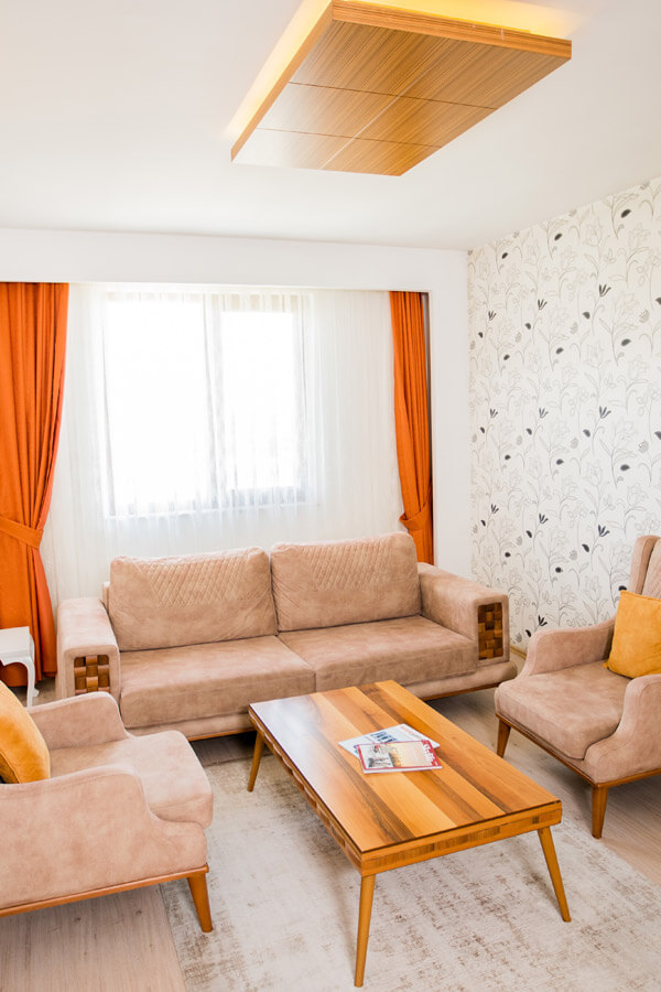 Люкс номер в Oruçoğlu Termal Otel сочетает в себе роскошь и элегантность, предлагая полный комфорт в одном пространстве. Спроектированный с учётом всех ваших потребностей, люкс номер обеспечивает незабываемый отдых благодаря просторной планировке, современному дизайну и стильным деталям. Удобные кровати в спальне, мягкие кресла в зоне отдыха и функциональные элементы мебели создают атмосферу абсолютного уюта.