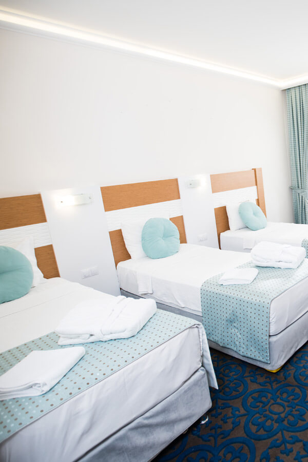 Семейный номер в Oruçoğlu Termal Otel предлагает незабываемые впечатления от отпуска благодаря своему просторному и уютному дизайну. Современный интерьер и тщательно подобранная мебель сочетают в себе элегантность и комфорт, создавая идеальную атмосферу для приятного времяпрепровождения с близкими. Просторная жилая зона, удобные кровати и функциональность делают этот номер отличным вариантом для длительного пребывания.